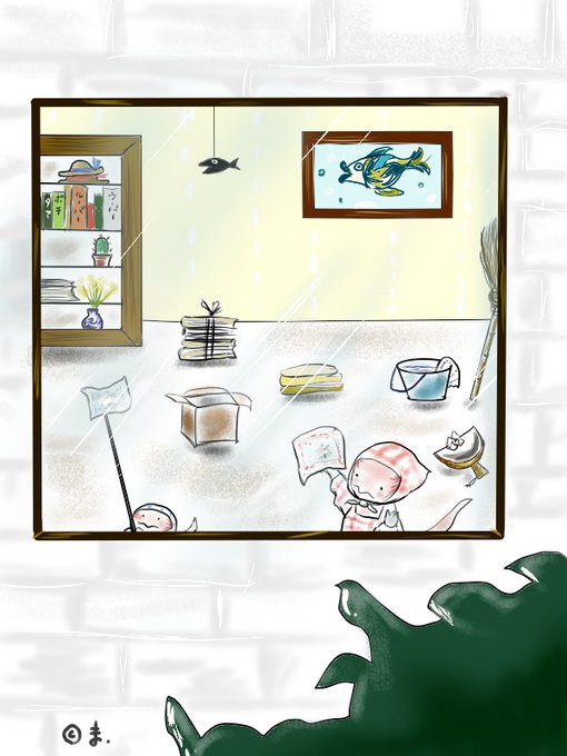 #絵描きさんと繋がりたい #イラスト好きさんと繋がりたい #イラスト #絵 #ウーパールーパー 「大掃除」 ...キミたち、えらいな!