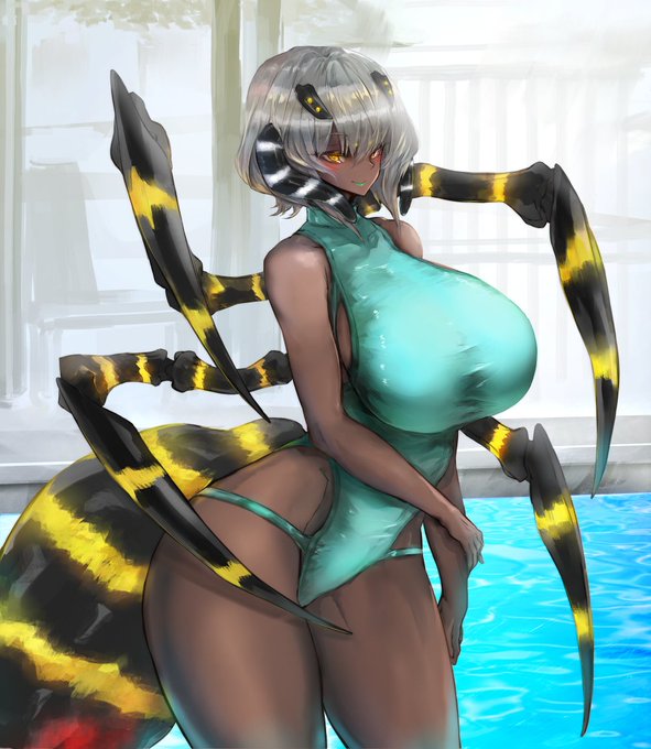 ある平日、市民プールに泳ぎに行ったら競泳水着蜘蛛娘さんに出会ったの巻☺️