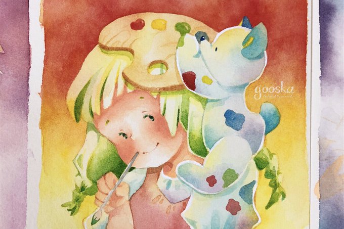 「次はどの色にしようかな」 10cm原画 2020年8月制作 #gooskamini ぼくもお絵描きしてみたい🎨