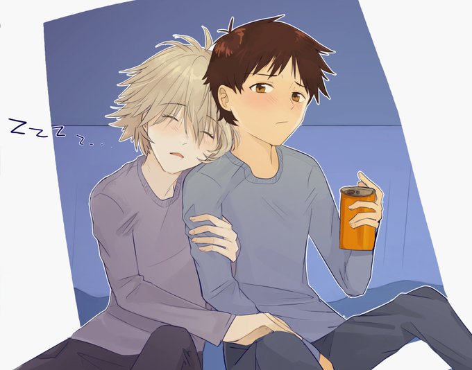 Self-indulgent headcanon: since Asuka and Kaworu are wearing the same clothes at the final scene of 3.0+1.0, they shop at the same place + give each other fashion advice #evangelion #kawoshin