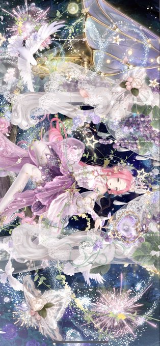 「夢と花の蝶」完成記念に。今イベのメイクとチャージでゲットしたピンク髪合わせてみたら可愛いかった💕 コーデ組むのに1日、2日悩むことがざらにあるので、完成記念に作った後には大体次のイベントが始まってる笑