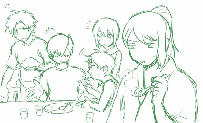 前髪ボサボサの主人公くん描いた