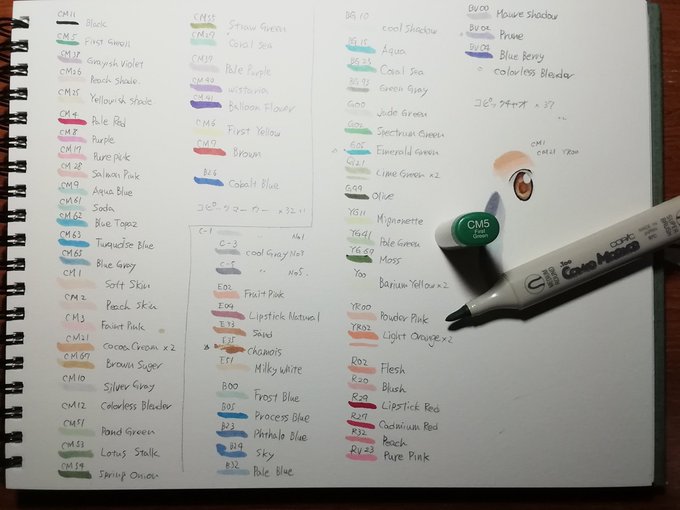 弟がこの間、使わず長年放置してたコピックくれたのですが、保存環境がそんなに良くなかったにもかかわらず、ちゃんとまだ使えるのすごい😳✨ (2枚目が貰ったコピックで塗った絵) 特に「コピックコミックマーカー」はもう生産終了しているから貴重品。 せっかくだし、時々使おうかな。 #コピック