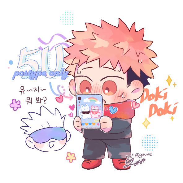 五悠💙🧡 전프레 슬슬 도착하고 있는 것 같아서 올립니다 고유 포타온 도무송 2종 협력했습니다! 유지가 보고 있는 건 모두가 아실 거라 생각합니다☺️