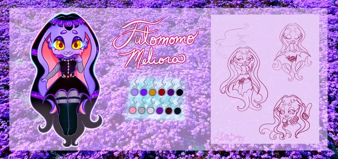 A super fun commission I got do! Absolutely adore this character concept and art! Character sheet with some sketching of her!🐰👻✨