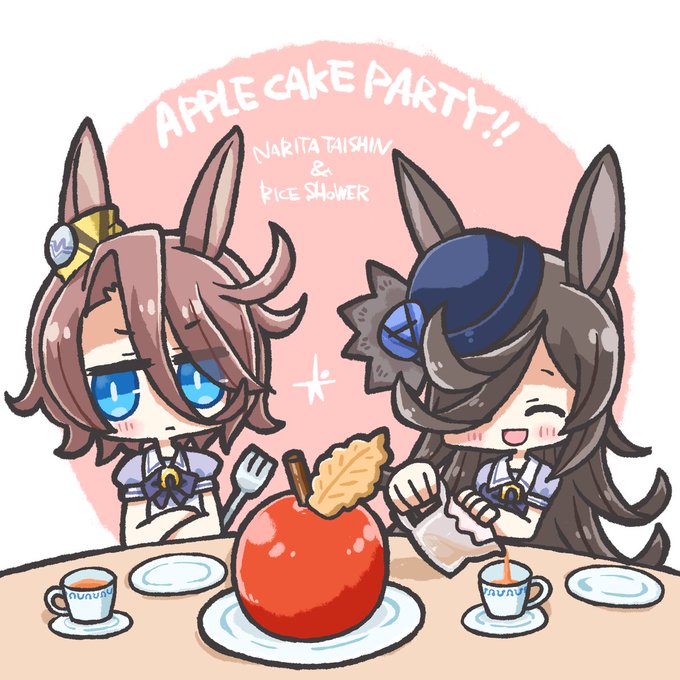 タイシンちゃんとライスちゃんとおっきなりんごのケーキ