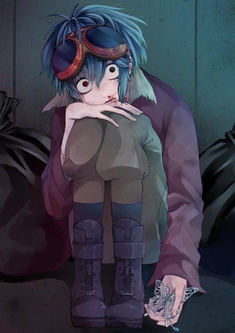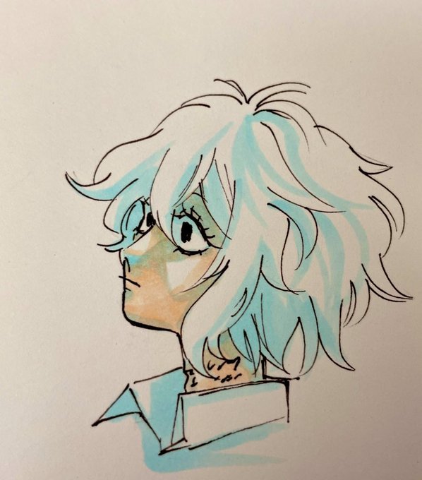 小説家化タグでもらっていた要素のイメージで描いた人。紫陽花のピアスを付けるつもりが忘れてしまった。 紫陽花・冷笑・朝の藍色