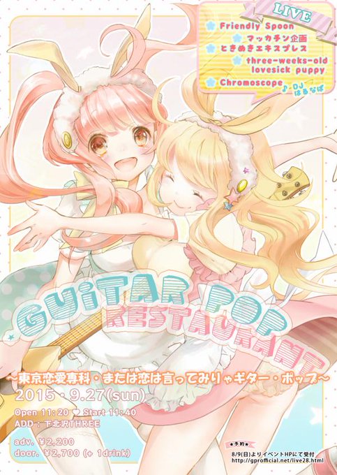 GPR26のフライヤー最終版が出来ました!デザインはemily*さん( @strawberrykey )です☆いつも可愛いフライヤーをありがとうございます! #ギタポ