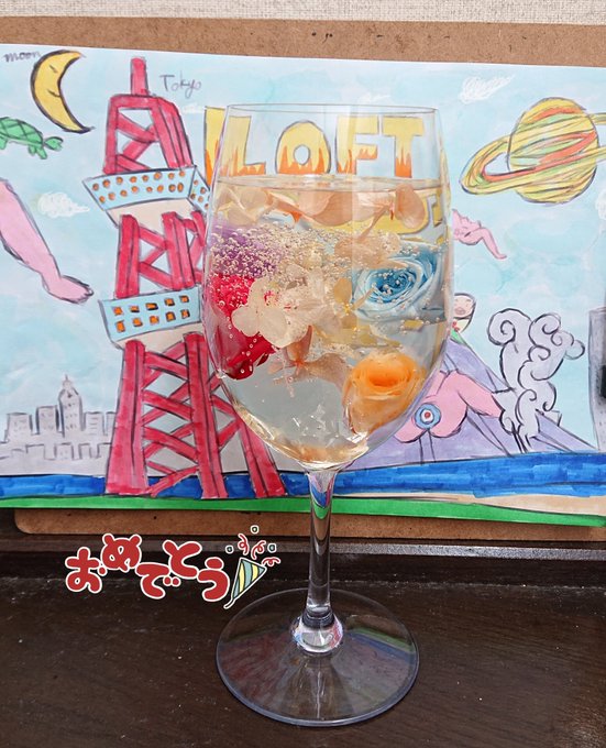 #Atomic7 eleventh開催おめでとうございます!! そして、アトナナ1周年おめでとうございます\(^O^)/ イラストとともに、ワイングラスだけどハイボールイメージなお花をお届けです! これからも酒呑み配信で楽しい時間を一緒に過ごさせてくださーい!! #絵tomic7