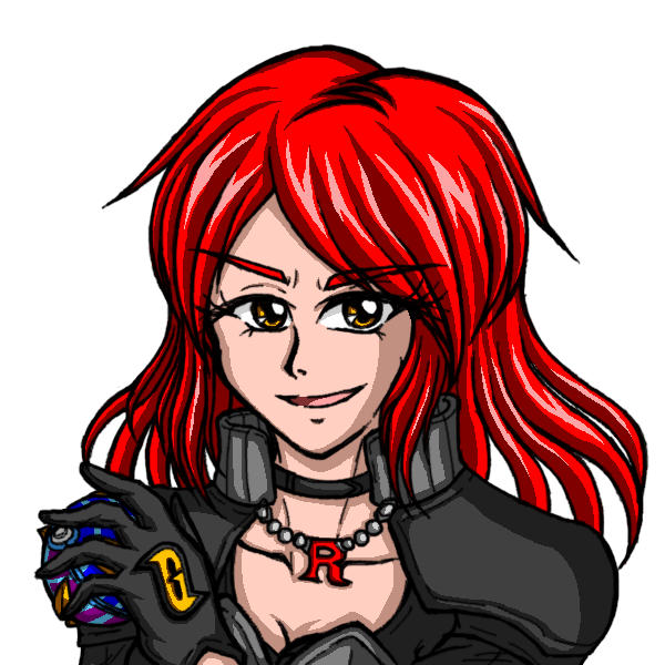 加えた要素はペンダントと背中でガラルR団シンボル、設定画の時にはピアスもさせてる、実は襟やチャック付近とか袖先もグソクムシャ寄りの3点。