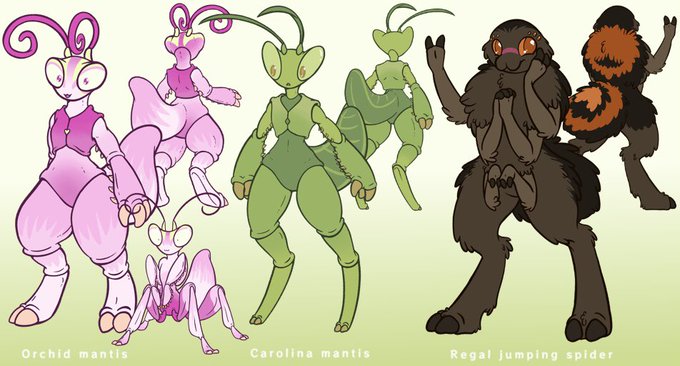 Each comes with full-size front and back view ref sheet. Orchid mantis includes a single-view feral version.