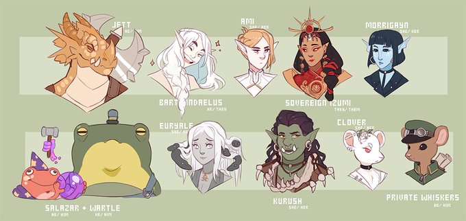 lumeria npcs! just a handful of recurring characters from my 5+ year long campaign 🥰🥰