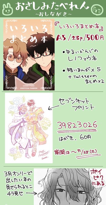 #猫騒ぎ1122 おしながき更新したので再ツイートです!字汚くてスミマセン!レノファウです‼️ 既刊に加えネップリもあります🍮🥳 次の本のチラ見せ(めっちゃ少ないです)はポイピクにてpass付きで公開します!スペースのお品書きにpass記載しますので遊びに来てください〜💐