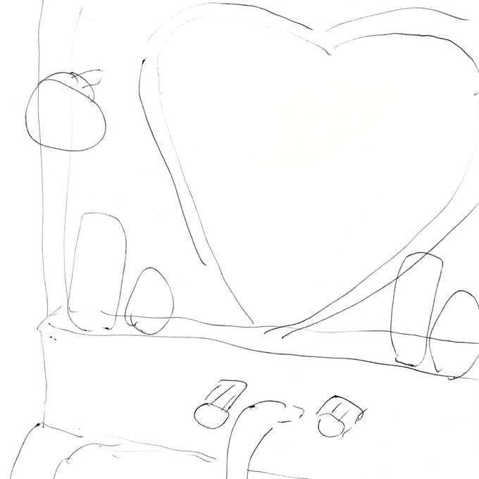 ラフと完成 ラフでは床に置いてたんですが、作ってるうちに水色が入ってる方がかわいいなーと思ったので空に浮かせました☁️
