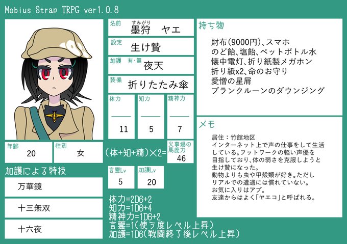 めんたろ裏話: キャラデザお題「蛇」「チーズ」「車」で描いたらくがきが元。お題落書きの中で気に入っていたのが今回のPC選びで白羽の矢が当たった