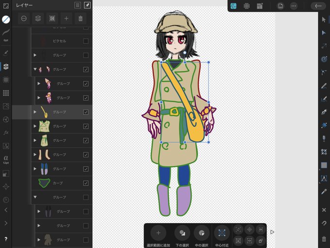 立ち絵制作過程 今回はいくつか服の色に候補がありました