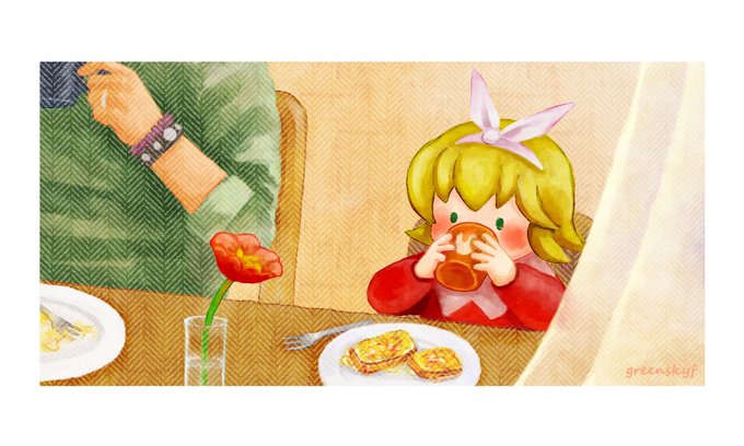 これは我が家のトイピアノを弾く赤井くん。過去絵再掲。