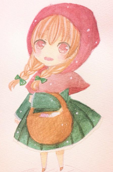 赤ずきん描いた♪ オオカミ描けなかった( ・×・)