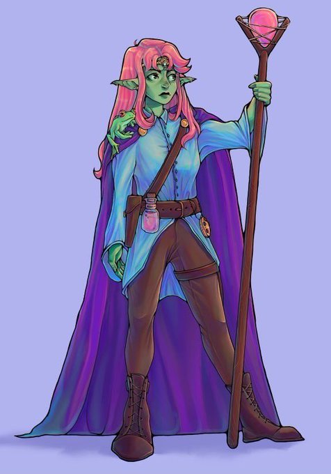 Since #DnDcharacter is trending, here’s Hope! Goblin divination wizard cursed to become a hag on her next birthday, traveling with The Bad Dragons to defeat the mutated planar dragon Vuzun! Follow for more ab her adventures! #DnD #dnd5e #dndart #ttrpgfamily #ttrpg #TTRPGRising