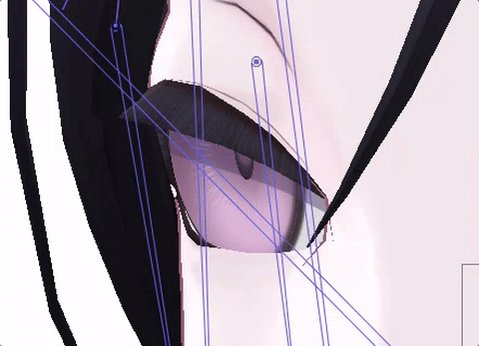 まばたきのときの、眼球の形に沿って皮膚が動く様を出したくてのボーンモーフ実験中 あと頂点モーフより軽い?と聞いて期待してる