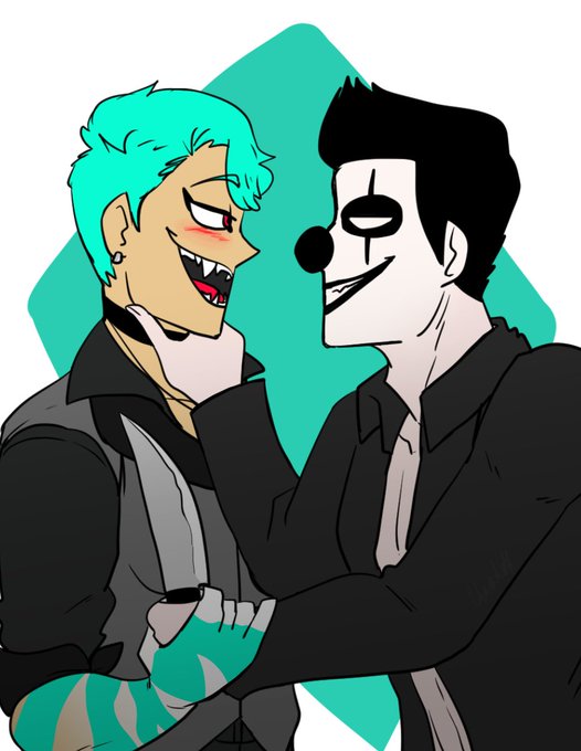 #oc #occouple #clown #stripes #fourships #ship #shipart #knife #sharpteeth #artchallenge #ocs #ocxoc