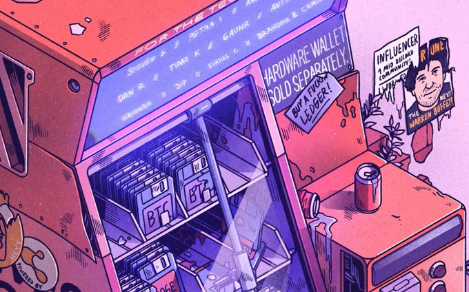 9/ Speaking of details: I don't need to add NFT/crypto puns to all of my work, but sometimes I just love to reference our weird culture. This series seemed like a perfect canvas for that, and there's lots to discover in all artworks. Even some hints & shoutouts 👀