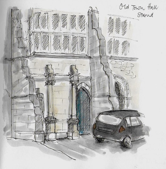 #sketchStroud in action this morning despite rain! @urbansketchers @hubStroud @UpperLock @PegasusArtShop @bellinnselsley @JinnySketches