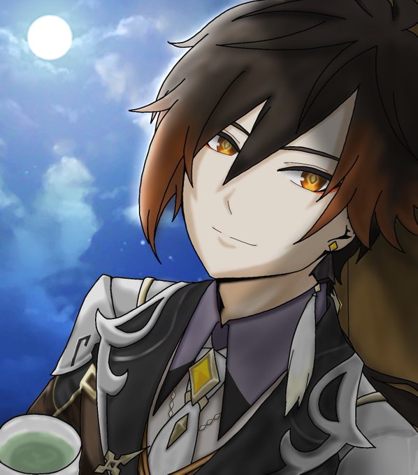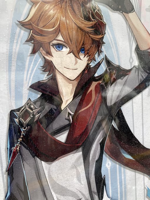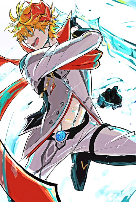 渋谷さん(@ arata_shibuya )とラフ交換してタルタリヤ描かせて頂きました。カッコ良い構図描けない人間なのでとても新鮮で楽しかった…!