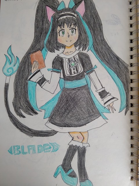 ぽよよさん( )が描いてくださった歌月ノワを再掲!おっとりとした乙女顔と長いツインテールそしてチャームポイントの猫耳がよく再現されています!ぽよよさん、描いてくださりありがとう御座います!