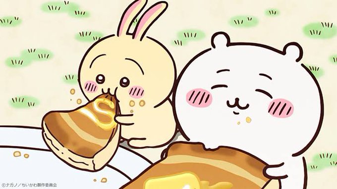 ちいかわのアニメ、うさぎがホットケーキぶったたいてecstasyしてるのとか表現されてなくて残念だ。 でもホットケーキおいしそう。