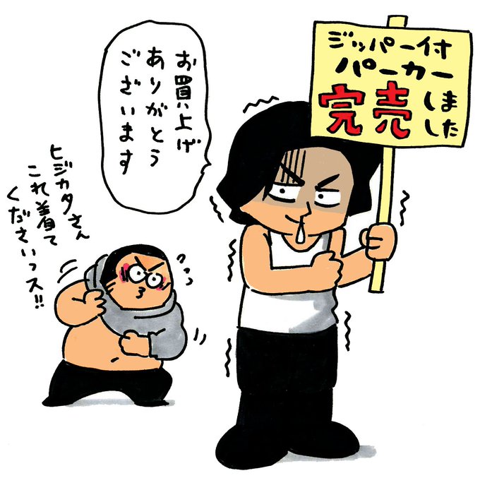 「まうのすけ仕事展」において販売の ヒジカタ印のジッパー付きパーカーは 本日完売いたしました。 お買い上げくださいました皆様 誠にありがとうございました!