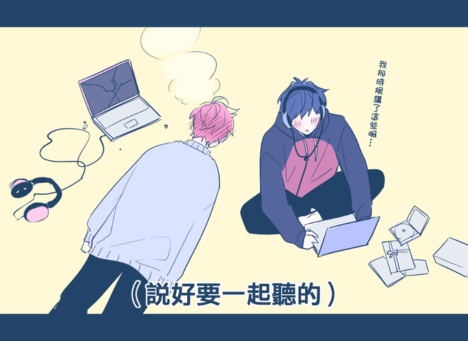 想到前導預告片楠哥跟夢太約好要一起聽的就畫了🥺