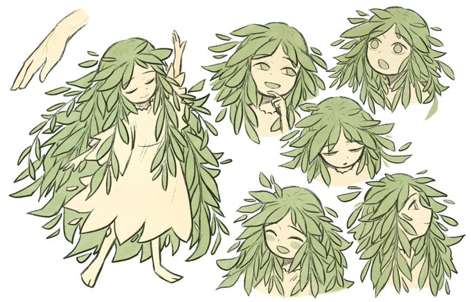 이 아이의 이름은 사리스에요..식물정령이고 버드나무가 컨셉이자 본체에요:) 자캐중에 이 아이를 좋아해주시는분들이 생각보다 많아서 소개해드려요..😭(감격..