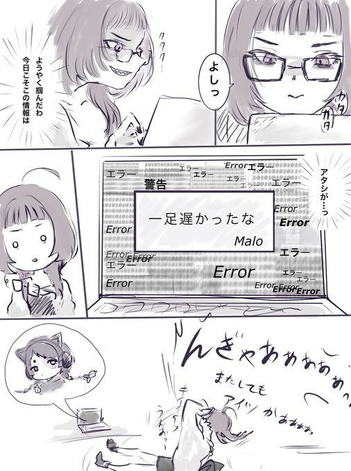 アレンリラの対になるヴォルフの2人はナナホとコナーで ナナホは器用貧乏で何でもできるハッカー リラは得意不得意に差がすごい代わりに天才ハッカータイプ そしてナナホは一方的にリラのことをめちゃくちゃライバル視してる。 #フェリダエリータ