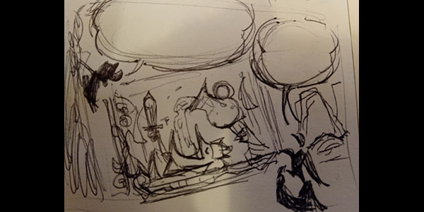 The first sketch relied on the dialogue to explain the urn contained water, so I revised it to a pouring pose. #webcomic