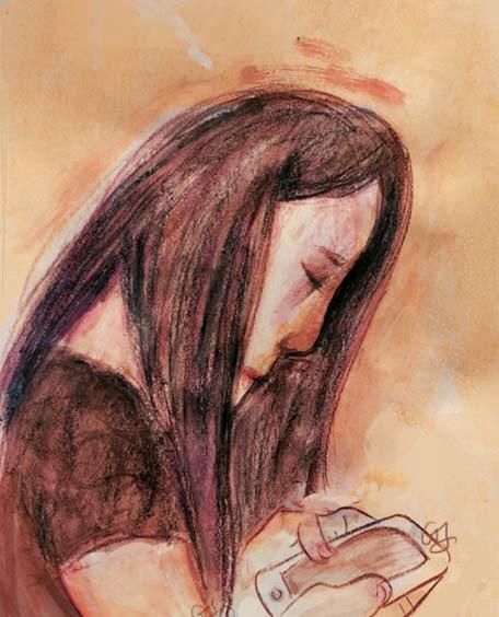 Sketch diary 7 friend who was playing iPhone6.