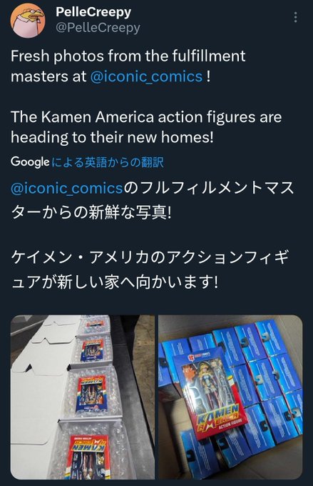 アクションフィギュア楽しみ!でもX(旧Twitter)の翻訳だと仮面アメリカがケイメン・アメリカになってしまう⋯⋯!!