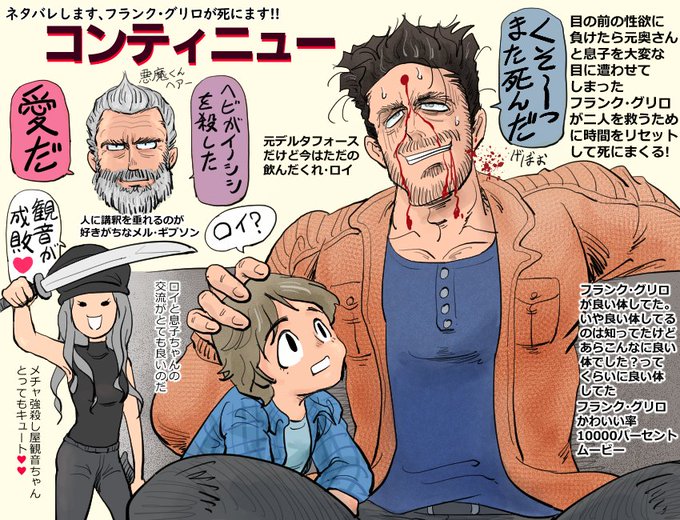 オンライン試写で6月4日公開のフランク・グリロ主演の映画「コンティニュー」観させてもらいました。気軽に観れる人の命が安い映画でとても良かったよ!あと全編にわたりフランク・グリロまみれなのでフランク・グリロ好きは観て絶対損はしねぇでガス