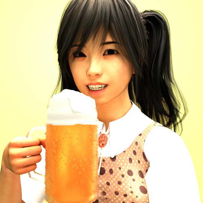 #blender daz to blender bridge でdazからキャラとポーズ持ってきて、blenderで作ったビールを持たせてみた🍺