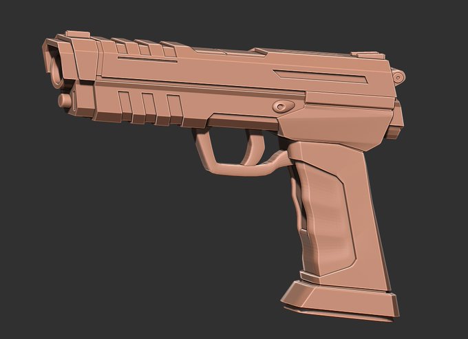 追加で銃も装備させています 今回はセミオートハンドガン風に造形しました