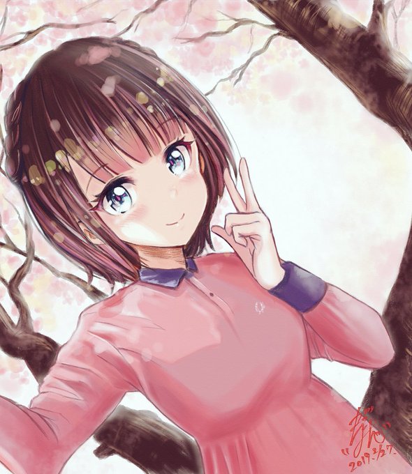 きっとまこりんの周りには、桜が咲いてると思いこんだ結果、背景を桜に笑