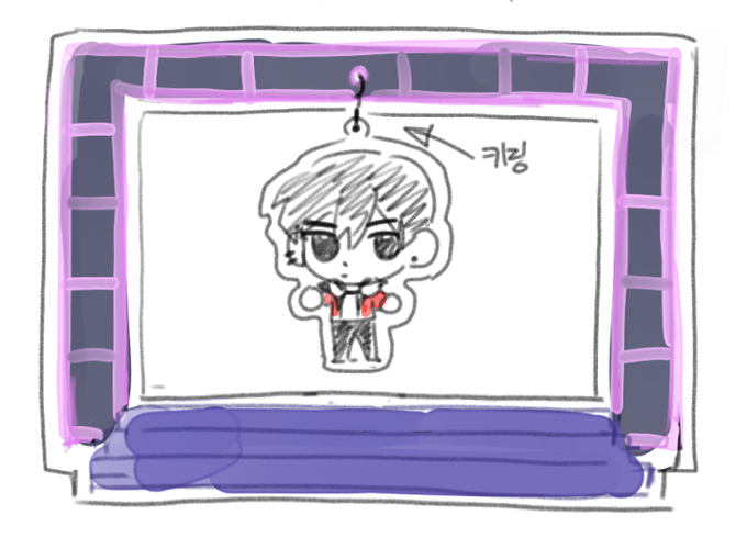 약간 이런? 느낌의 아크릴 스탠드.... 귀엽겟다 키링 구멍 3개 뚫어서 1명에서 3명 정도 걸 수 있을듯 무대 컨셉 살려서 LED 스탠드 하면 좋을거 같다