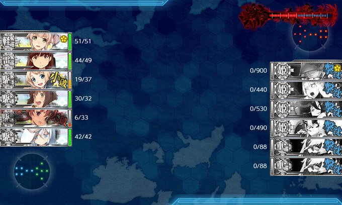 本人の高い耐久力と随伴の始末に火力を取られて中々ゲージが削れませんね。┐[-T-]┌ 5回目の挑戦でやっとS勝利できたもののドロップはハズレでした。