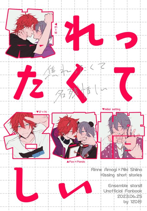 6/25 JUNEBRIDEFES2023内 烏輪にキスしてJB2023 燐ニキキス短編集「焦れったくて名残惜しい」 A5/36P/会場価格500円/全年齢 少し長めのサンプル:https://t.co/aTJCSv7mII キツネ×パンダ、初期、1714、2114の4パターンの燐ニキのキスシチュの短い話を詰め合わせ本です