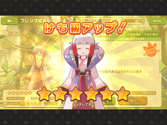 …ある意味、初の初期キャラ星6到達です。 おめでとうトキちゃん \€}※^〆〜-%);‼︎/ #けものフレンズ3