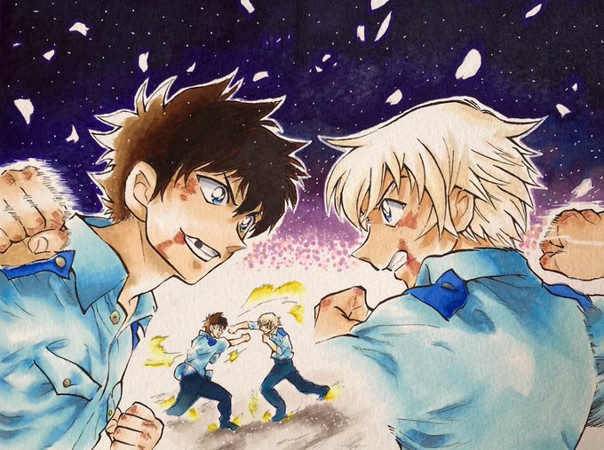 何気にコナンの絵柄って難しいよね🤣 過去一レベルで時間かかったかも…(←しょっちゅう言ってる気が笑) #模写イラスト #アニメイラスト #漫画 #名探偵コナン #警察学校組 #降谷零 #松田陣平 #コピック #コピックイラスト #ohuhu
