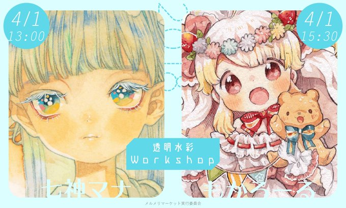 🐻おしらせ🐻4月1日メルメリィにて、もかろーるさんとワークショップを行います🎨わたしの線画に、共に塗っていただく透明水彩の講習です😊絵の具の溶き方から解説いたしますので、初心者のかたもぜひお待ちしておりますね❤