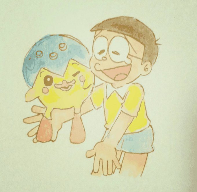 新のび太の鉄人兵団より、のび太とピッポ描いてみました✏