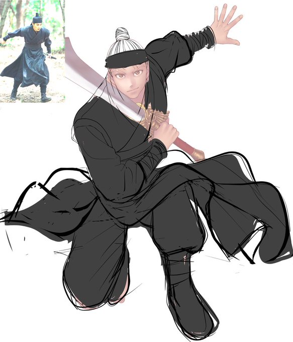 やっと仕上げられた…ひそかに供養🙏🏼 助けないといけないお姫様がいる感じで 最初半襟(トンジョンとやら)はなしで全身真っ黒にしていたんだけど気が変わってつけてみたら必要な気がした #韓服男子 #イラスト #伝統衣装 #韓服 #hanbok #한복 #바지저고리