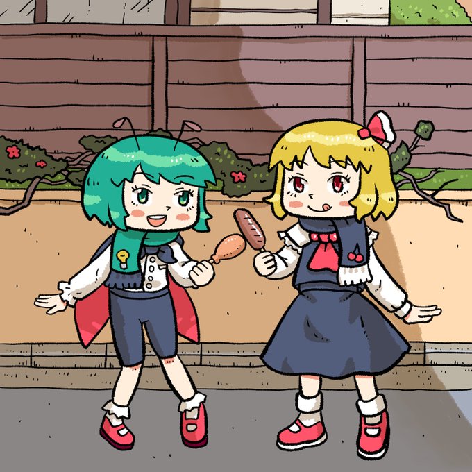 ホットスナックを食べるルーミアさんとリグル・ナイトバグさん #毎月七日はルーミアの日